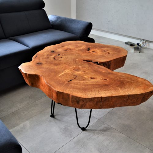 Stolik drewniany kawowy dębowy plaster drewna