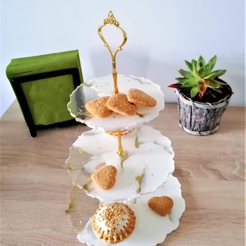Patera na ciasto/owoce 3 poziomy Biało złota