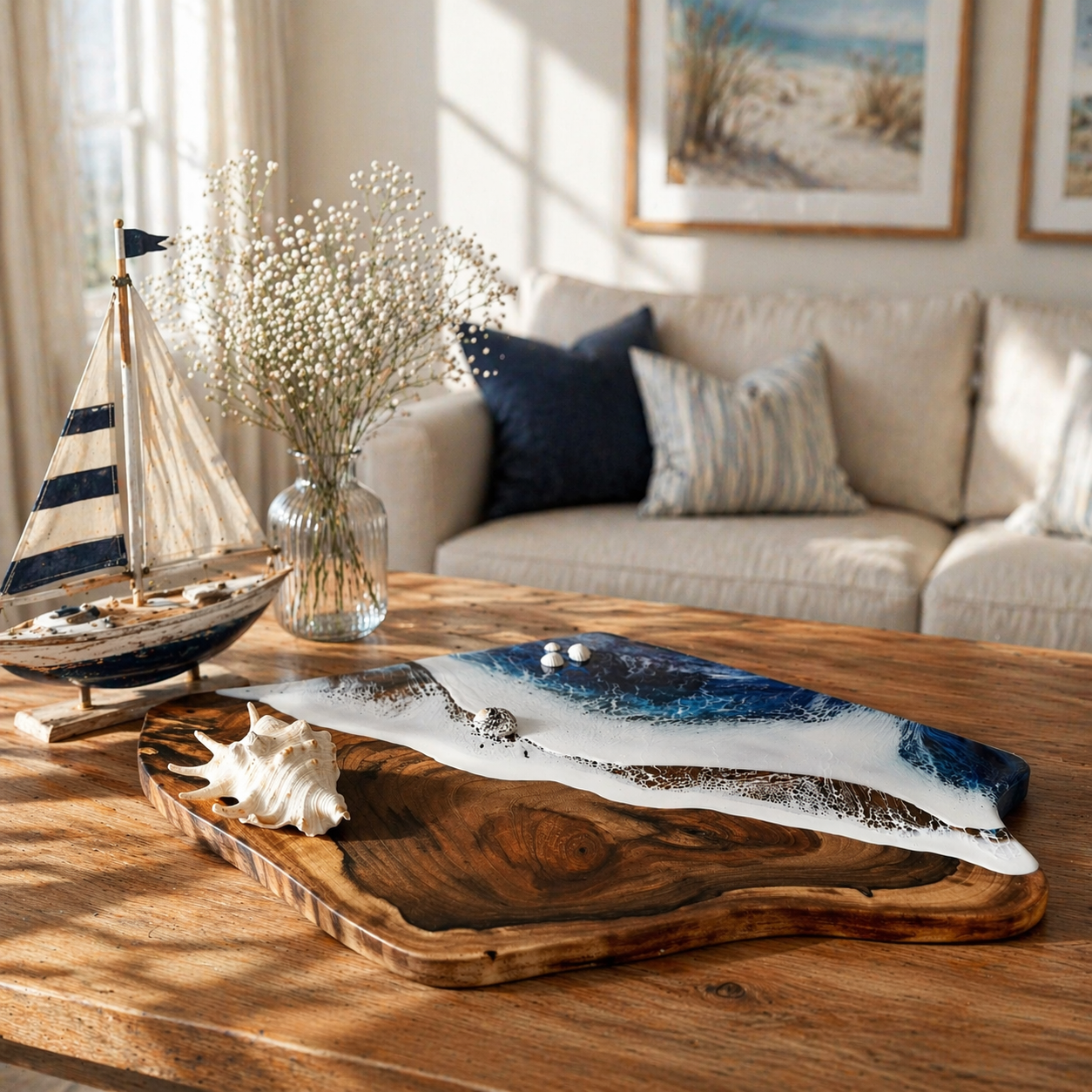To nie tylko funkcjonalna deska, ale przede wszystkim dekoracja, która wprowadza do wnętrza świeżość, spokój i klimat nadmorskiego wypoczynku. Idealnie sprawdzi się jako element aranżacji salonu, kuchni lub wyjątkowy pomysł na prezent.
