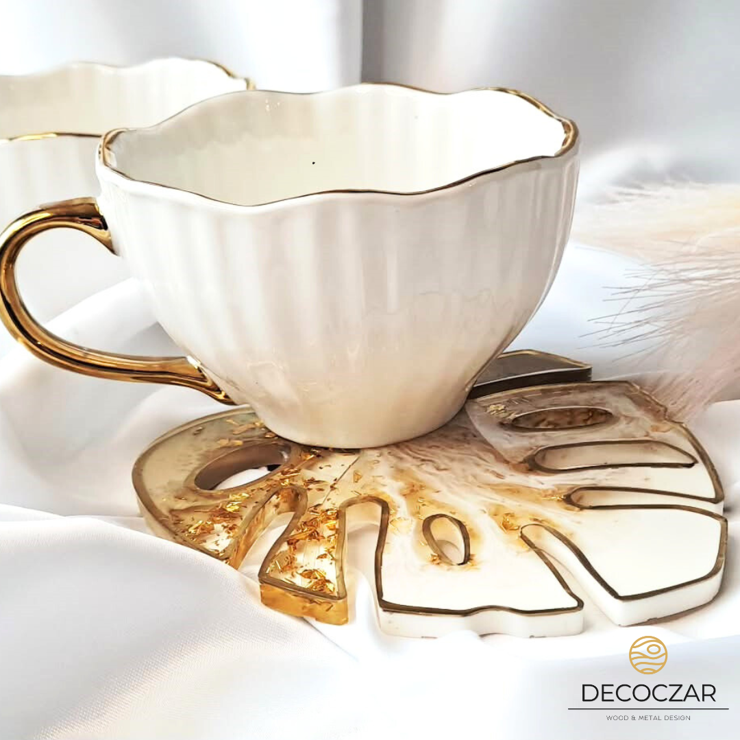 Podkładka z żywicy epoksydowej – Monstera beżowo biała