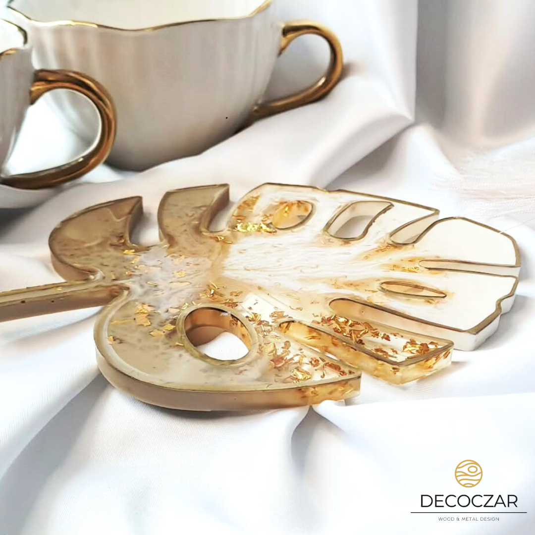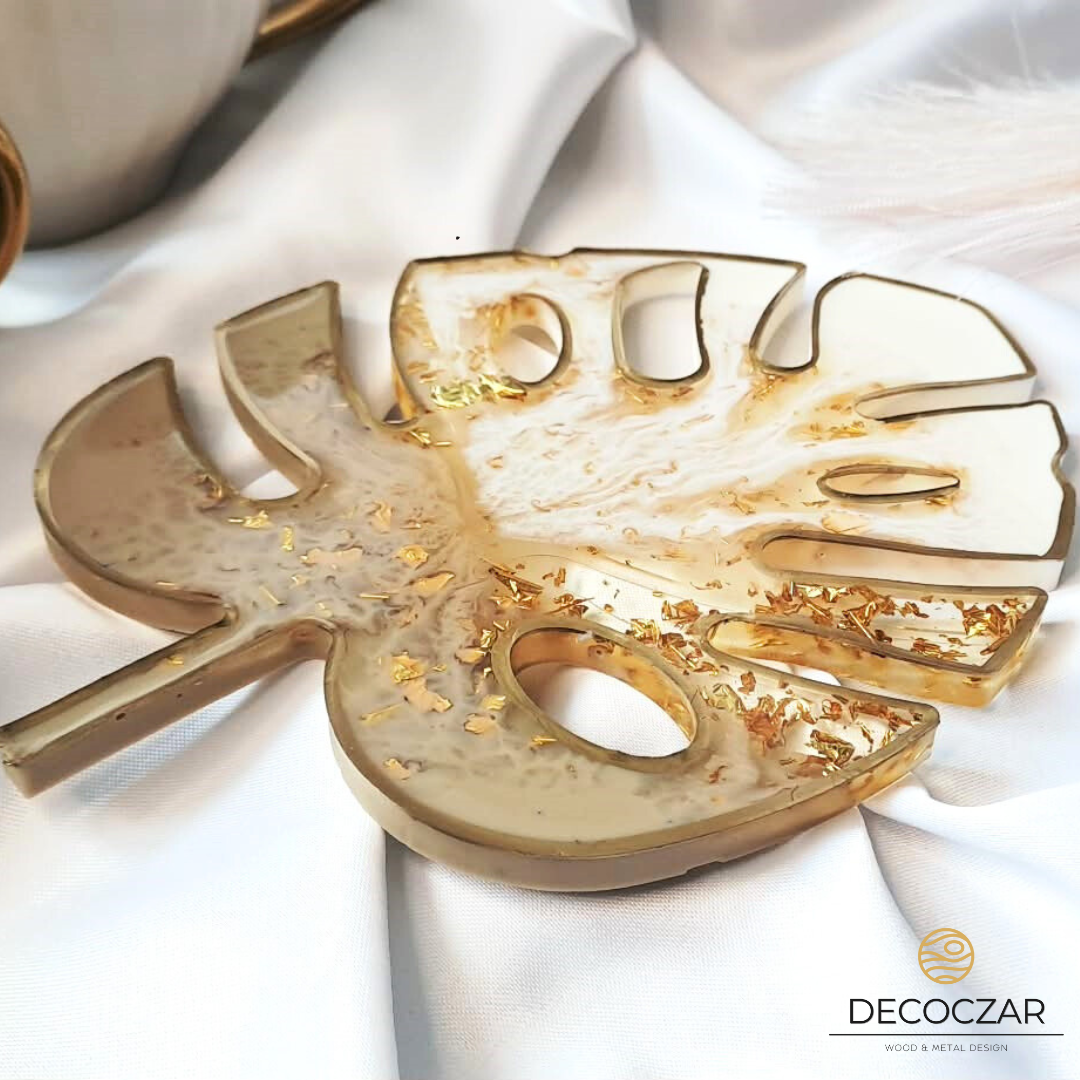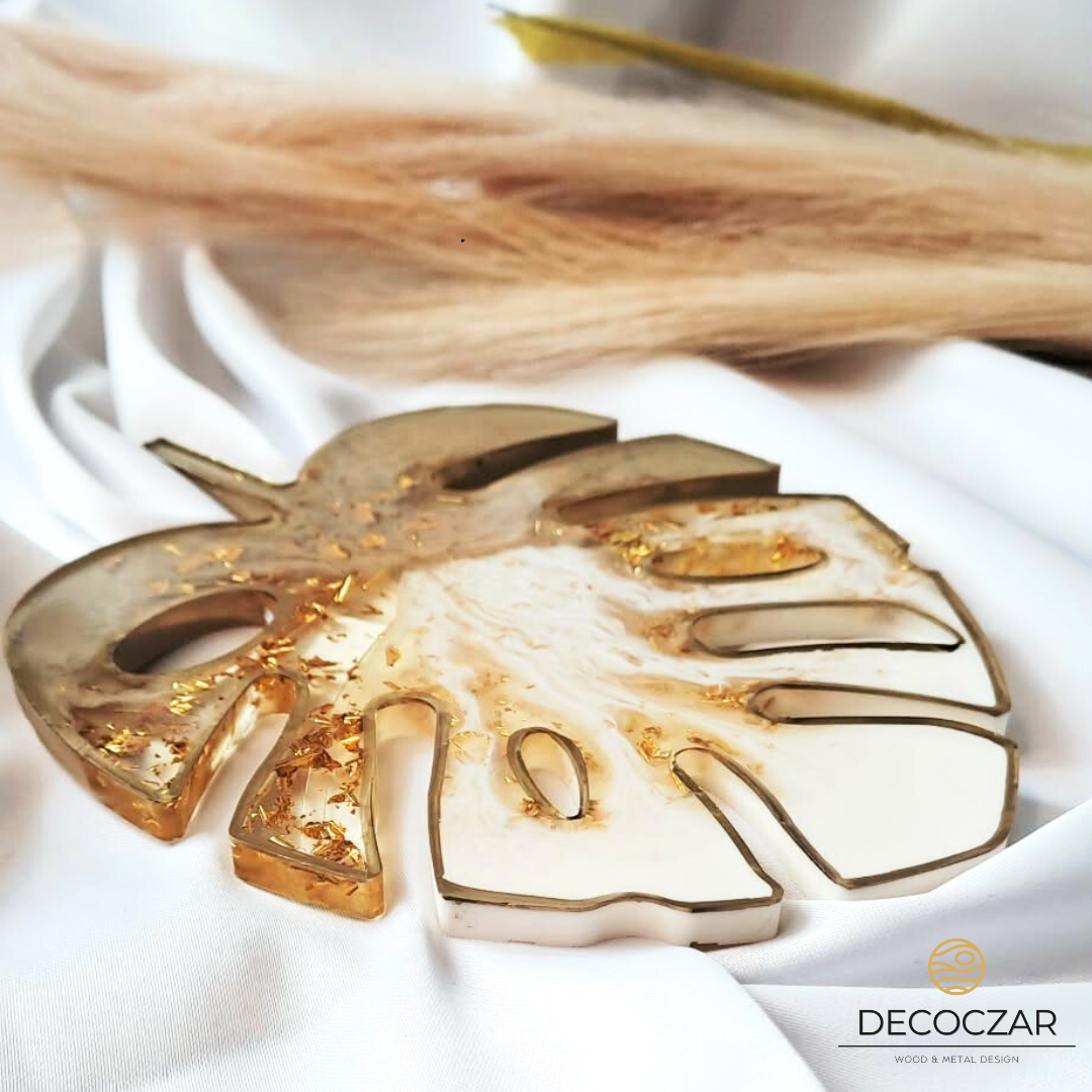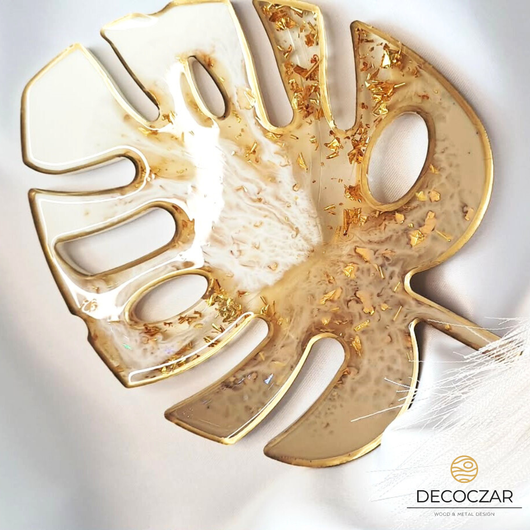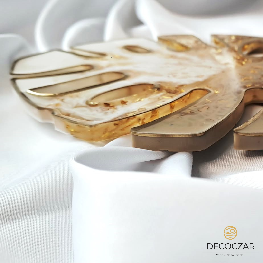 Wprowadź do swojego wnętrza odrobinę natury i elegancji! Oferujemy ręcznie wykonaną podkładkę w kształcie liścia monstery, stworzoną z żywicy epoksydowej w pięknych odcieniach beżu, bieli z dodatkiem złotych płatków. Każdy egzemplarz jest unikatowy, dzięki czemu masz pewność, że nikt nie będzie miał identycznej ozdoby. ![]()