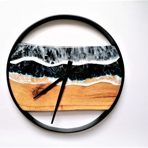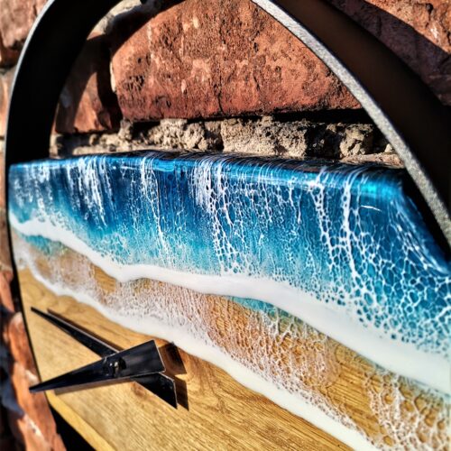 Zegar z dodatkiem żywicy wykonany w morskim stylu to niepowtarzalny dodatek do wnętrz
